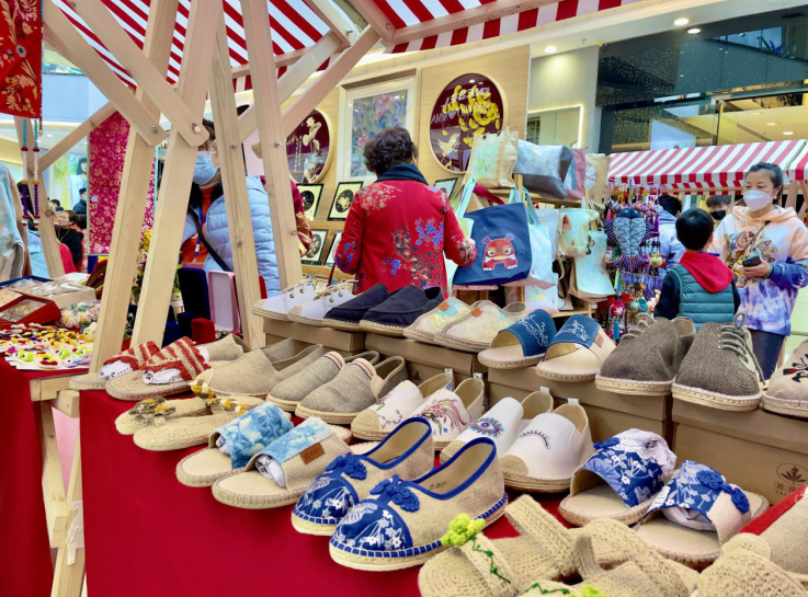 集市上,刺繡、香包、剪紙、草編、串珠、掐絲畫、麥桿畫等多種隴原民俗文化手工藝品精彩紛呈,多名非遺傳承人現(xiàn)場演示剪紙、刺繡、染纈等傳統(tǒng)手工技藝,還有互動體驗(yàn)及產(chǎn)品展銷,現(xiàn)場熙熙攘攘,熱鬧非凡。
