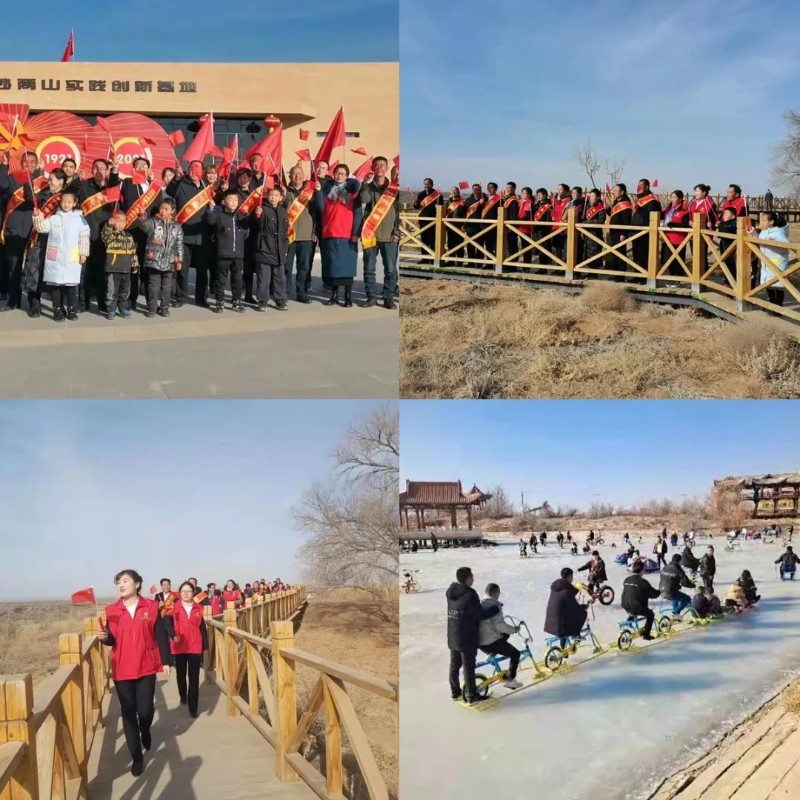 古浪八步沙兩山實(shí)踐創(chuàng)新基地春節(jié)期間組織開(kāi)展《領(lǐng)航》歌曲傳唱活動(dòng)。武威沙漠公園冰雪游樂(lè)項(xiàng)目讓游客體驗(yàn)到冰雪樂(lè)趣,感受到運(yùn)動(dòng)魅力。
