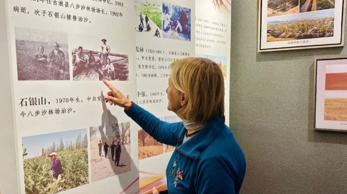 10月23日,“維娜絲路中國行”甘肅站活動走進武威。當天下午,意大利徒步旅行家維娜·卡瑪洛塔女士一行參觀了由甘肅文旅集團打造的八步沙“兩山”實踐創(chuàng)新基地。