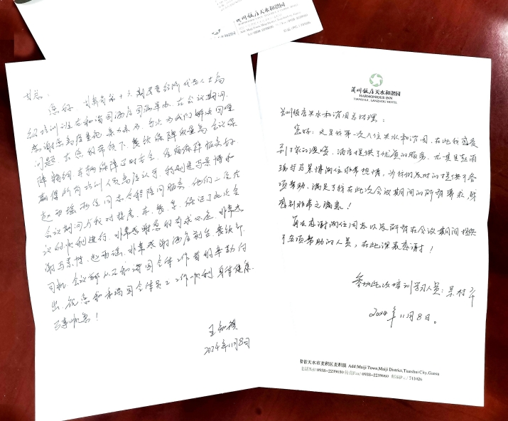 近期,“甘肅省第十六期民營經濟代表人士高級培訓班”在天水圓滿結束。期間,天水和諧園承擔了此次培訓班的接待任務。酒店以完備的場地設施、精細的餐飲安排、貼心的住宿服務,贏得了參會代表的認可與稱贊,其服務保障工作收獲諸多好評。 代表們一封封手寫的感謝信,一張張普通的便簽紙,沒有華麗的詞句,字里行間卻流露著對天水和諧園全體干部員工的真誠情感與真摯謝意。 “餐飲保障質量高,會議保障精細,車輛保障及時安全,住宿保障服務好”“這是我第一次入住天水和諧園,在此我感受到了家的溫暖,酒店提供了優(yōu)質的服務。”參會代表們的稱贊不絕于耳。天水和諧園以專業(yè)的服務能力和熱情細心的服務態(tài)度,得到了大家的肯定和表揚。 作為省內“老品牌”高端酒店,天水和諧園在提升服務管理方面下足功夫,將各項措施細化落實到位,全方位、立體式地為客戶提供精細、專業(yè)、標準的管家式服務,致力于為廣大客戶打造更加舒心、舒適且人性化的旅居環(huán)境。以革新和創(chuàng)效為基礎,注重品質化、個性化、人文化服務實踐,聚焦企業(yè)文化底蘊與新潮靈動發(fā)展相碰撞,從點滴細節(jié)締造溫馨、溫情的入住體驗,著力打造西北“溫度、深度、寬度”并存的特色精品休閑度假酒店。 未來,天水和諧園將以更加細致入微的服務溫暖人心,深耕現(xiàn)代服務理念,不斷創(chuàng)新服務模式,為新老客戶帶去真正值得信賴的“和諧體驗”及“如意服務”。在今后的發(fā)展中,天水和諧園將持續(xù)優(yōu)化服務流程,創(chuàng)新服務模式,提高自身的服務水平和競爭力,以更高效、優(yōu)質、專業(yè)的服務迎接來自四面八方的貴賓,續(xù)寫天水和諧園高質量發(fā)展的新篇章。