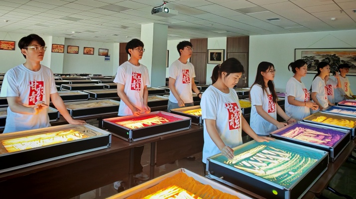 活動期間,同學(xué)們還體驗(yàn)了沙畫藝術(shù)創(chuàng)作,觀看了八步沙治沙專題教育片,并積極參與草方格壓沙實(shí)踐,親手為荒漠治理貢獻(xiàn)力量。通過理論與實(shí)踐的結(jié)合,隊(duì)員們深刻領(lǐng)悟了“困難面前不低頭、敢把沙漠變綠洲”的八步沙精神。