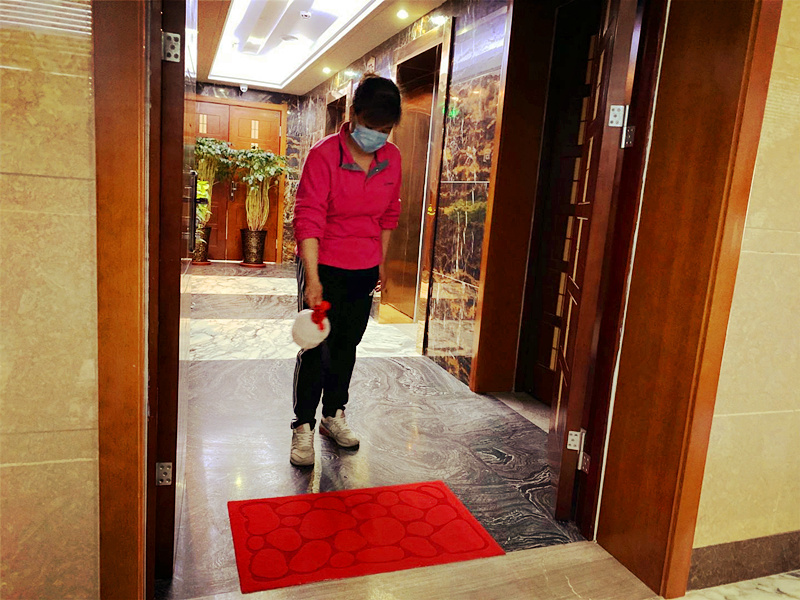 工作人員提前對(duì)辦公室、會(huì)議室、飯?zhí)玫裙矃^(qū)域進(jìn)行無(wú)死角消毒,并重點(diǎn)對(duì)門(mén)把手、設(shè)施按鍵、樓梯通道等公共重點(diǎn)部位進(jìn)行多次消毒,在辦公區(qū)入門(mén)位置放置鞋底消毒墊。