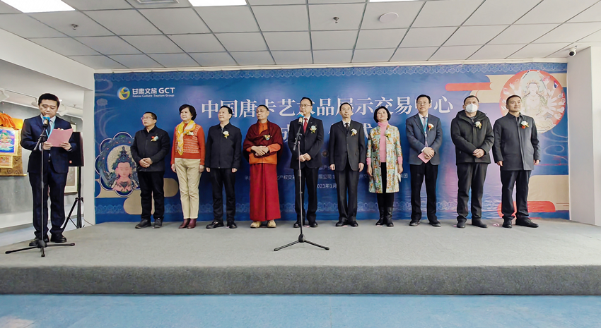 1月11日,中國(guó)唐卡藝術(shù)品展示交易中心在蘭州成立。甘肅文旅集團(tuán)黨委副書記、總經(jīng)理?xiàng)钣詈?,甘肅省文旅廳一級(jí)巡視員楊建仁,中國(guó)木偶藝術(shù)劇院院長(zhǎng)趙永莊,原甘肅文旅集團(tuán)黨委委員、紀(jì)檢監(jiān)察專員李存旺,甘肅文旅集團(tuán)黨委委員、副總經(jīng)理朱銀鴻,省民委二級(jí)巡視員吳燕妮,蘭州市委宣傳部常務(wù)副部長(zhǎng)王耀宏和市民宗委副主任陳學(xué)貴,國(guó)家級(jí)唐卡非遺代表性傳承人,甘肅文旅集團(tuán)、甘肅文交中心、甘南州文旅交建集團(tuán)主要負(fù)責(zé)人,及有關(guān)方面特邀嘉賓參加了成立儀式。由甘肅文交中心舉辦的唐卡藝術(shù)精品展于當(dāng)日同時(shí)開展。